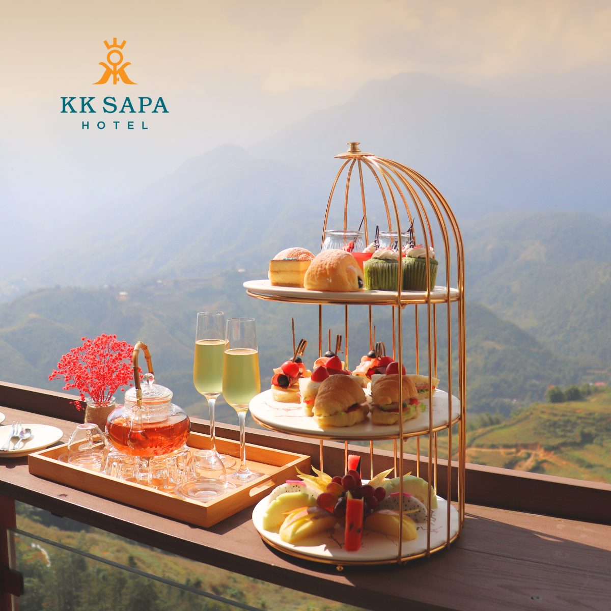 Complimentary 01 Special Afternoon Tea in the Clouds Set: Savor romantic afternoon tea amidst Sapa's poetic mountains, a unique experience found only at KK Sapa Hotel.